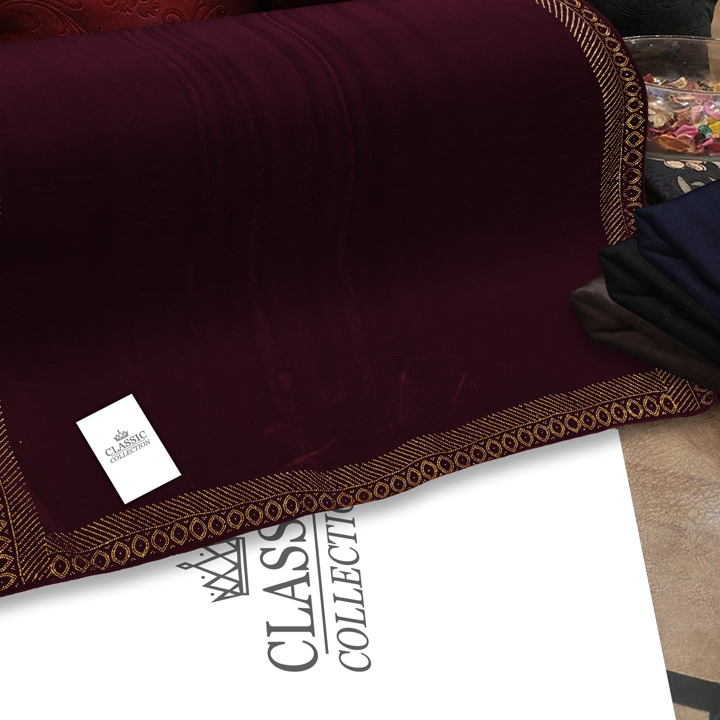 China micro Velvet bridal Shawl Stone work 4 Border (Mehrun)